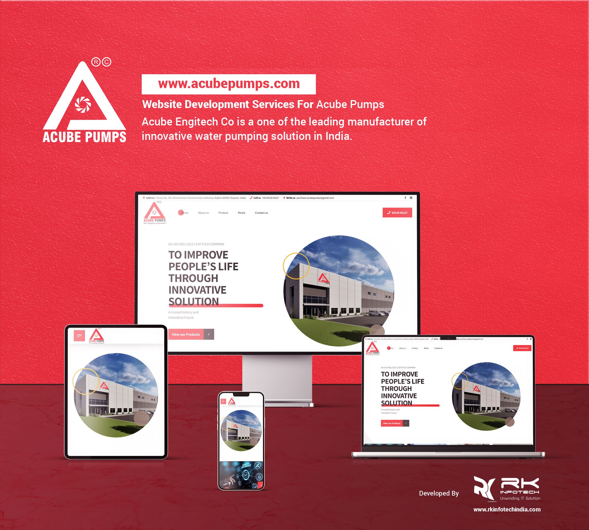 Another proof of our team’s excellence in their work is their, Website is ready for Acube Pumps. Acube Engitech is one of the leading manufacturers of innovative water pumping solutions in India. It manufactures and supplies more than 1500 different models of all types of submersible pumps set to cater to all needs of every segment of society.